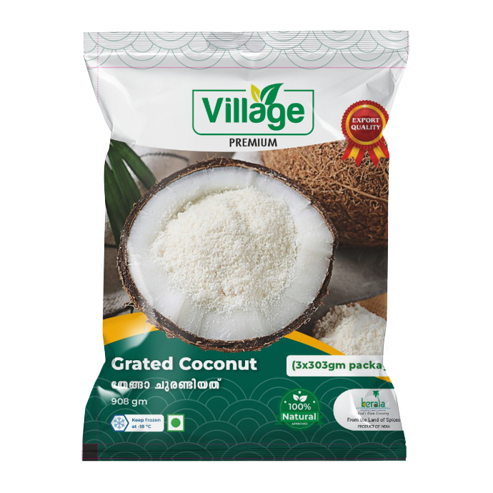 Frozen Grated Coconut is made from freshly selected mature coconuts, finely grated and frozen immediately to preserve natural freshness, aroma, and flavour. Essential in South Indian and Sri Lankan cuisine, it’s perfect for making chutneys, curries, desserts, and traditional dishes like Avial, Thoran, and Payasam.